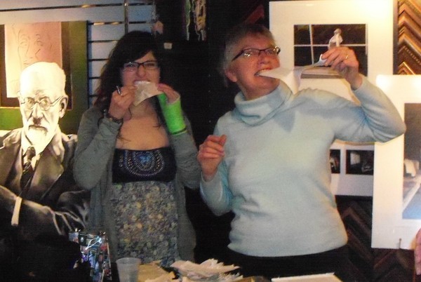 Irina Haralambis (left) of Woodhaven and Margaret Parker of Ann Arbor ferociously ripped up diet books at The Great Rip Up at River's Edge Gallery in Wyandotte