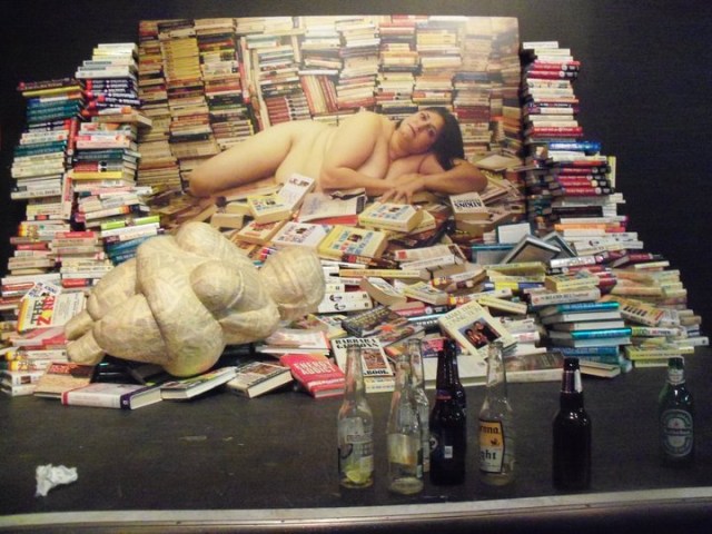 The way the Venus just lays there atop of the diet books…she looks like an archeological find, so fitting. I love it.