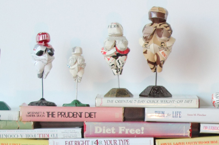 • Hi Christopher what a lovely comment, you have made my day. Did you have a particular diet book cover in mind for your doll? I will be making a large number of them in advance of an exhibition in China in April of 2014. Their sizes and prizes vary depending on the rarity of the book cover and the size of the doll. There is also an opportunity to receive one for a contribution to the funding of a book entitled Sometimes Beautiful. The curator, writer is offering up two of my first dolls for a $100.00 contribution. One is a Dr. Phil diet, and the other is Stop the Insanity by Susan Powter.