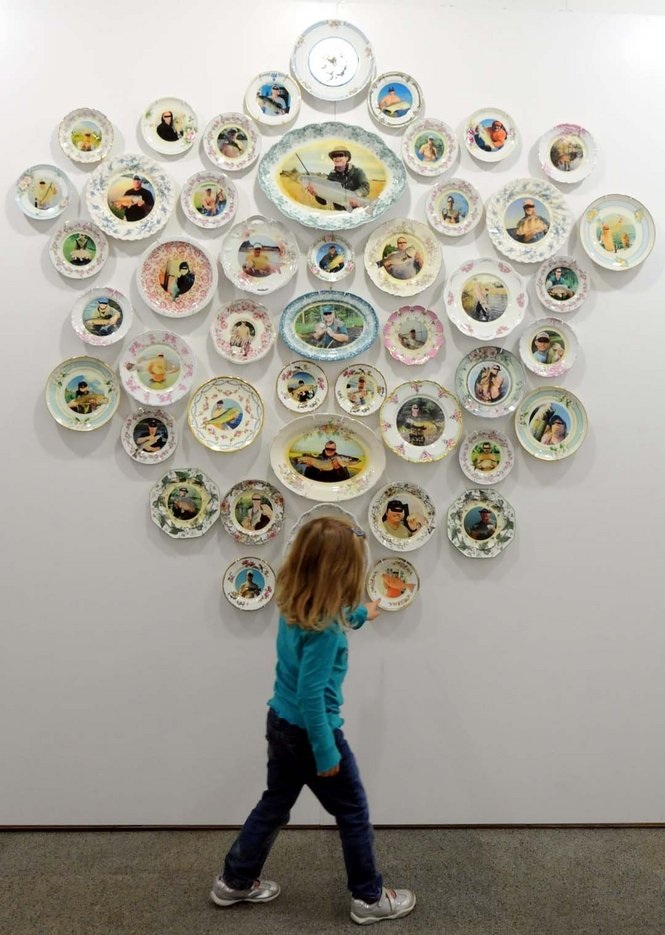Catherine Rizor looks at my piece at WCC GRand Rapids Kathy Batdorff Grand Rapids Press
